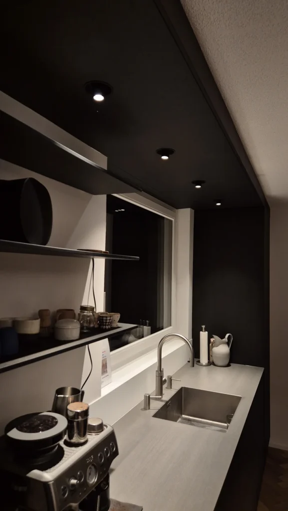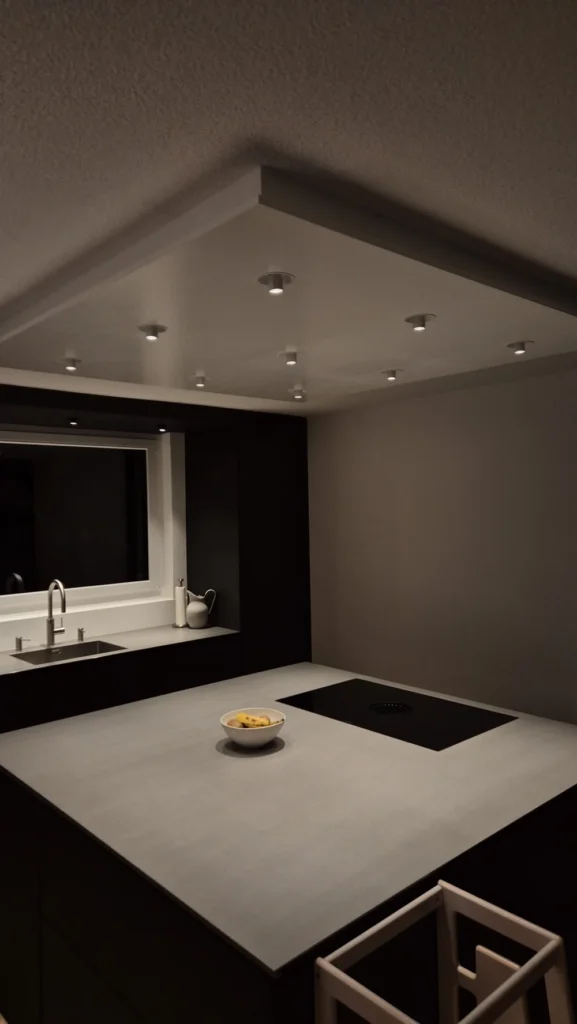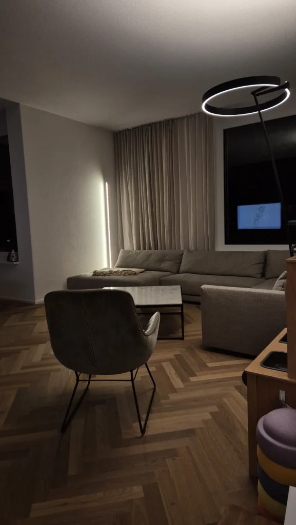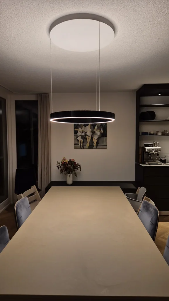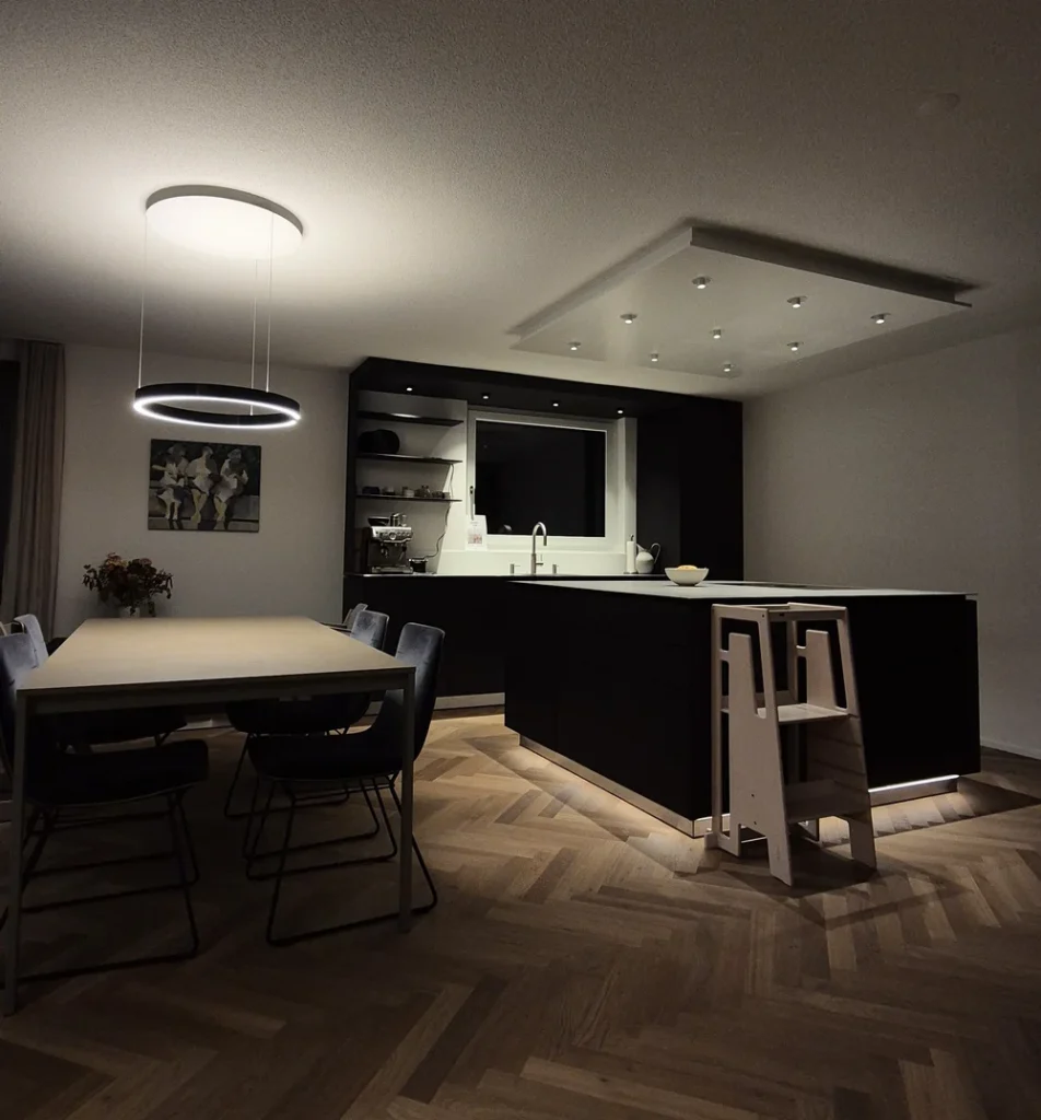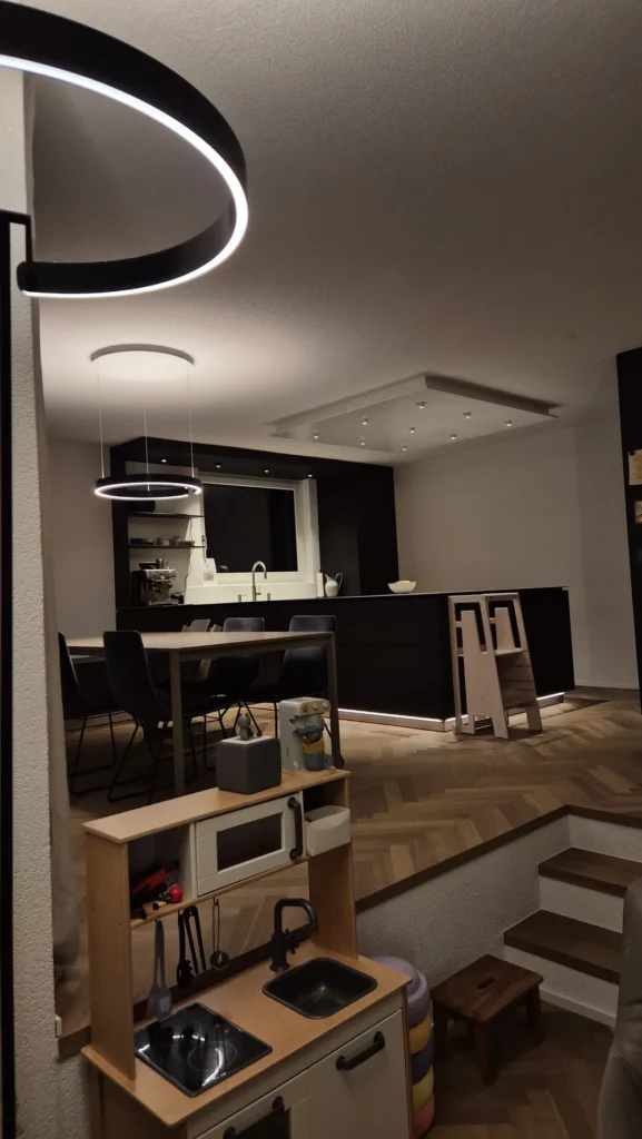 Da die gesamte Beleuchtung über eine Casambi-Steuerung realisiert wurde, war es essenziell, unsere Ideen frühzeitig in die Pläne einzubringen und diese gemeinsam mit dem Elektriker abzustimmen. Dank der sorgfältigen Vorbereitung und der einfachen Handhabung des Systems war der Aufwand für den Elektriker minimal, um die vollständig neue Beleuchtung zu installieren.