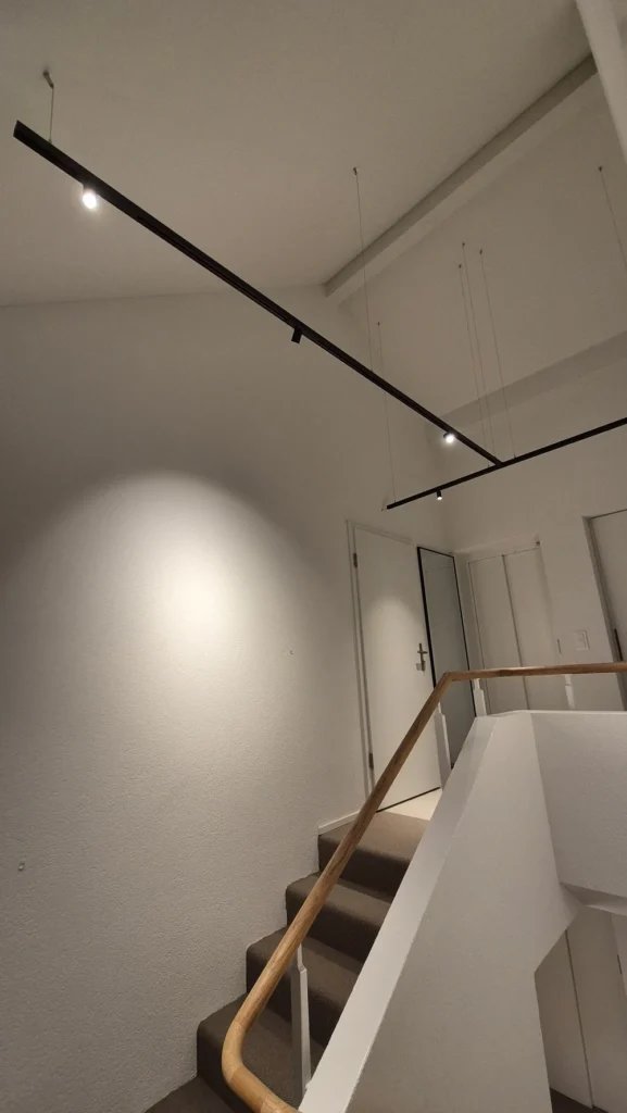 Die grösste Herausforderung entwickelte sich zum grössten Erfolg: Die 48-Volt-Schiene im gesamten Treppenhaus fügt sich perfekt ein. Sie sorgt für eine hervorragende Ausleuchtung, bietet hohe Flexibilität und überzeugt gleichzeitig mit einer ansprechenden Optik.